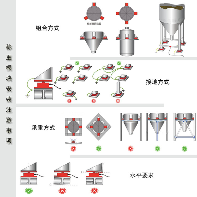 1.靜載稱重模塊適用于只受垂直作用力的場合。如反應(yīng)釜、槽罐、儲料斗的重量檢測。
